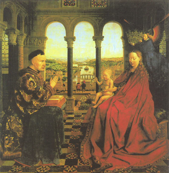 Ян ван Эйк. Мадонна канцлера Роллена. Около 1435 года. Дерево, масло. Лувр, Париж.