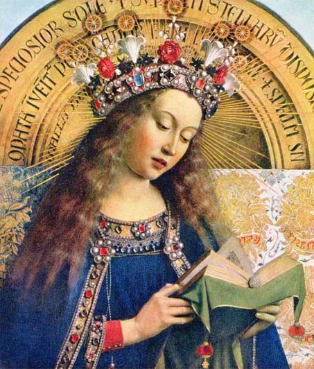 Ян ван Эйк. Лик девы Марии. Фрагмент центральной части Гентского алтаря. 1432 год. Дерево. Собор святого Бавона в Генте.