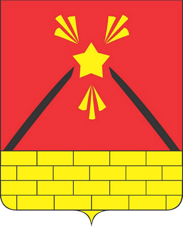 Герб города Электроугли. В червленом (красном) поле из-за золотой, мурованной черным оконечности выходит узкое черное стропило, посередине расторгнутое и заостренное, с пятиконечной золотой звездой. От звезды отходят золотые лучи — трижды по три.