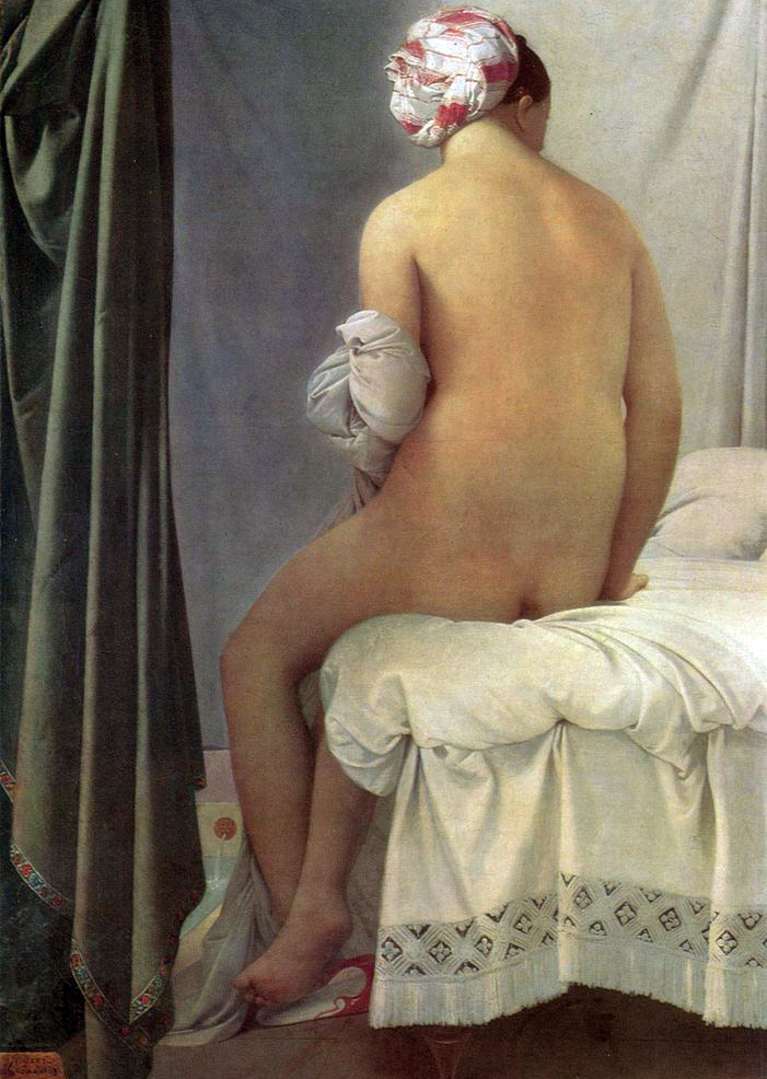 Ж.-.О.-Д. Энгр. Купальщица. 1808 год. Холст, масло. Лувр, Париж. Картина известна также, как «Большая купальщица» и «Купальщица Вальпинсона», по фамилии владельца в 19 веке.