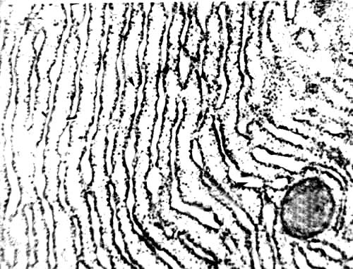 Эндоплазматическая сеть, или ЭПС, представляет собой систему расположенных в цитоплазме канальцев, окруженных эндоплазматической мембраной. Канальцы ЭПС могут ветвиться и сливаться друг с другом, образуя единую транспортную сеть клетки. Различают два типа ЭПС: гладкую и шероховатую. На мембране последней расположены многочисленные рибосомы.