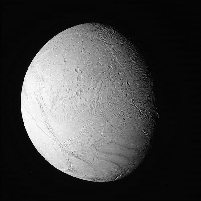 Внешний вид Энцелада. Фотография сделана АМС «Кассини» 14 июля 2005 с расстояния 103, 2 тыс. км.