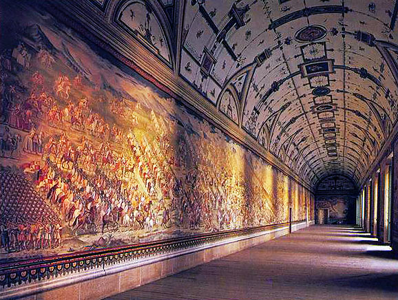 Галерея сражений. Полотна, созданные итальянскими живописцами около 1587 изображают победу кастильского короля Хуана II над арабами в 1431, победу при Сен-Кантене (1557) и другие победы Филиппа II.