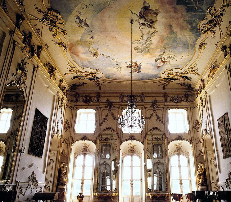 Эстерхаза. Банкетная комната. Роспись потолка, как и многие другие фрески во дворце, выполнена И. И. Милльдорфером.