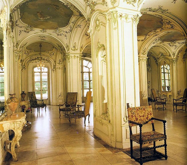 Самой большой комнатой дворца является разделенная пилястрами на три части «Зала Террена».