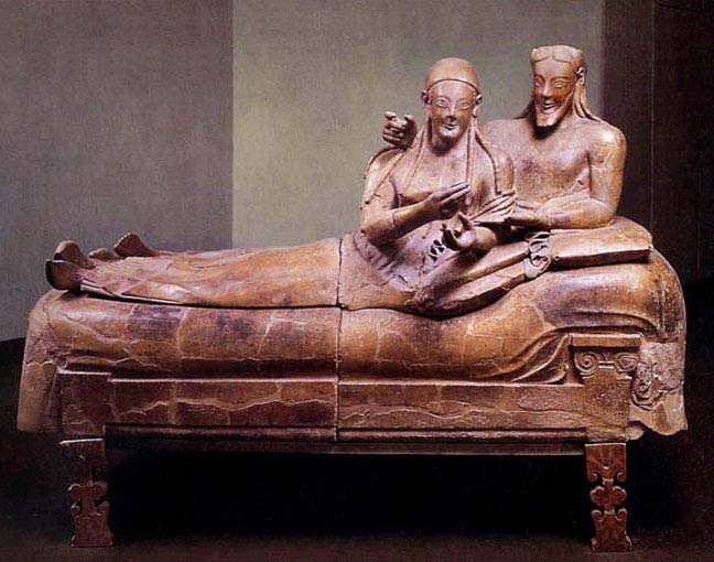 Саркофаг с изображением супружеской четы этрусков. Из Черветери. Терракота. Начало 6 в. до н.э. Этрусский национальный музей. Рим.