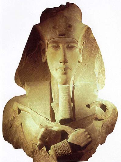 Бюст одного из 28 колоссов Аменхотепа IV (Эхнатона), возведенных в храме Гематон в Карнаке. 14 в. до н.э. Египетский музей. Каир.