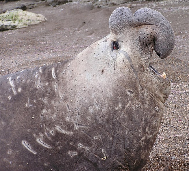 Южный морской слон (Mirounga leonina). Морда взрослого самца.