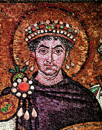 Юстиниан Великий. Мозаика в церкви Сан-Витале в Равенне. Середина 6 века.