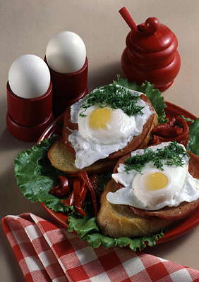 Яйца «В мешочек» на ломтиках поджаренного хлеба