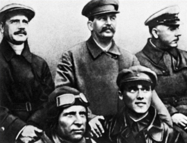 А.А. Андреев (секретарь ЦК ВКП(б)), Ю.И. Пионтковский, И.В. Сталин, А.С. Яковлев (сидит справа), К.Е. Ворошилов. 12 июля 1935 год. Источник: Якубович Н. Неизвестный Яковлев. «Железный» авиаконструктор. 2012.