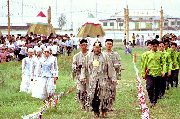 Во время древнейшего якутского праздника Иссых. В центре — шаман.
