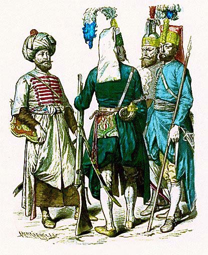 В турецкой армии были сформированы знаменитые регулярные отряды пехотинцев - янычар. Этот элитный корпус состоял из солдат-рабов, набиравшихся среди населения завоеванных территорий империи.