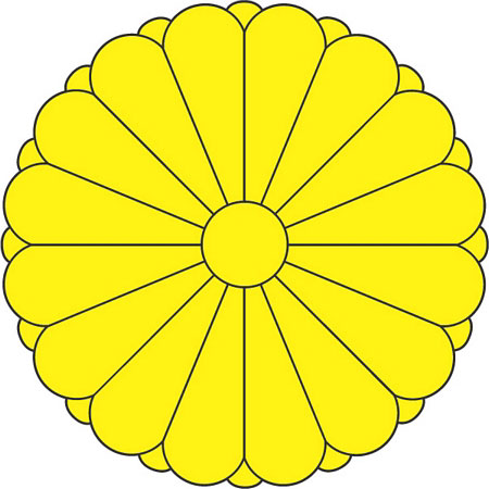 Фактически Япония не имеет государственного герба, но в его качестве часто используется герб императорской фамилии — желтая хризантема, состоящая из 16 двойных лепестков, которая также символизирует солнце.