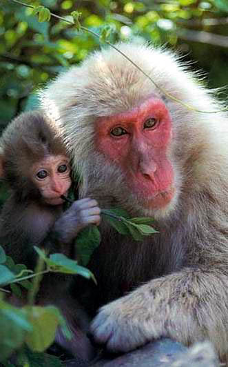 Самка и детеныш японского макака.