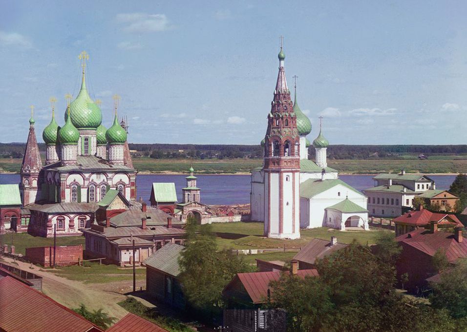 Ярославль. Коровники. Вид с северо-запада, с мельницы. Слева церковь Иоанна Златоуста (1649-1654). Фотография С.М. Прокудина-Горского. 1911 год.