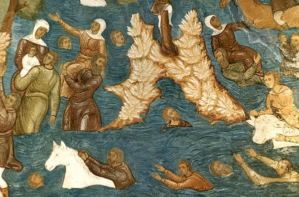 Потоп. 1680-1681 годы. Фреска северной паперти церкви Ильи Пророка в Ярославле.