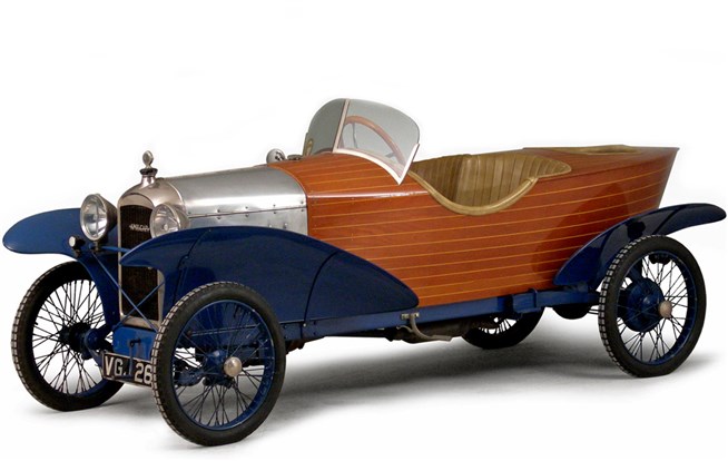 Amilcar Type 4C Skiff. В 1922 году Amilcar выпустила спортивную машину, которая стала известна под названием Type 4C Skiff. Префикс Skiff модель получила из-за формы кузова из красного дерева, сделанного под лодку. Салон обшивался натуральной кожей. Машина была оснащена четырехцилиндровым двигателем и механической трехступенчатой коробкой передач. Фото: bonhams.com