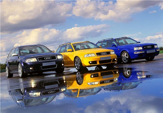 Audi RS-серия. Слева на право: AUDI RS6 quattro, AUDI RS4 quattro, AUDI RS2 quattro