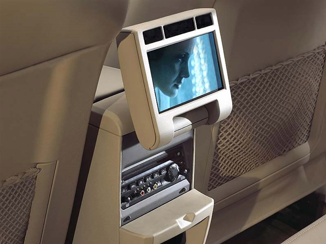 Развлекательный мультимедийный комплекс с DVD-плейером в салоне автомобиля Cadillac SRX.