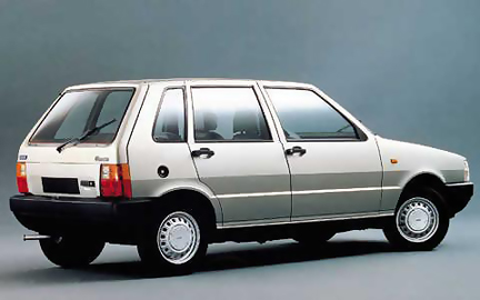 Fiat Uno, вид сзади и сбоку.