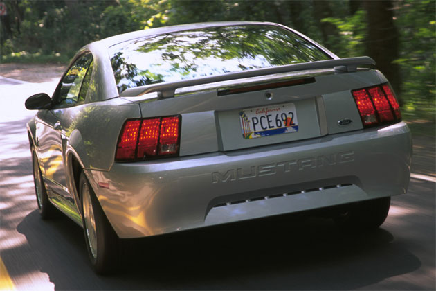 Ford Mustang вид сзади в движении 1