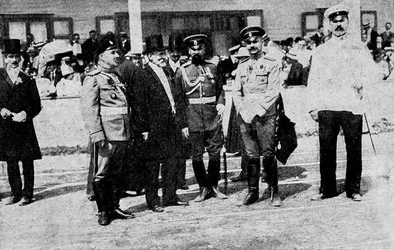 Руководители российского спорта на открытии II Российской Олимпиады, проходившей в июле 1914 в Риге (в центре В.И. Срезневский, А.П. Мордовин, В.Н. Воейков).