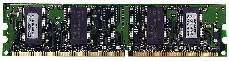 Модуль синхронной динамической памяти с удвоенной пропускной способностью 128 MB DDR SDRAM производства фирмы Kingston Technology (DIMM 184 pin).