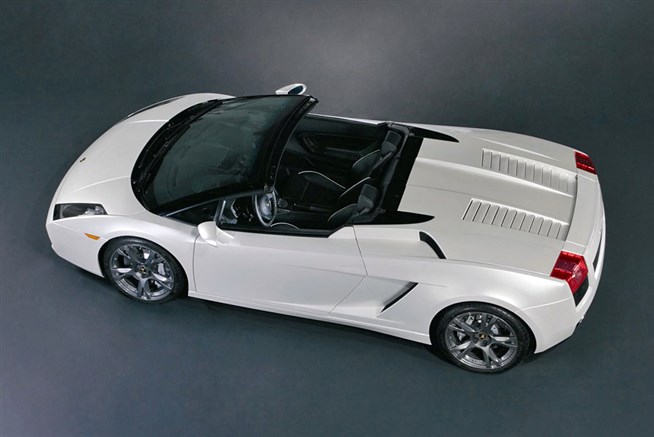 Родстер Gallardo Spyder со сложенной крышей. Вид сверху.
