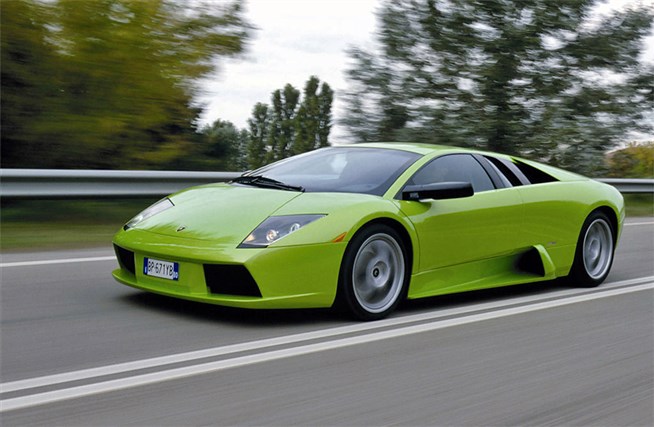 Эксклюзивный спортивный автомобиль Lamborghini Murcielago на дороге.