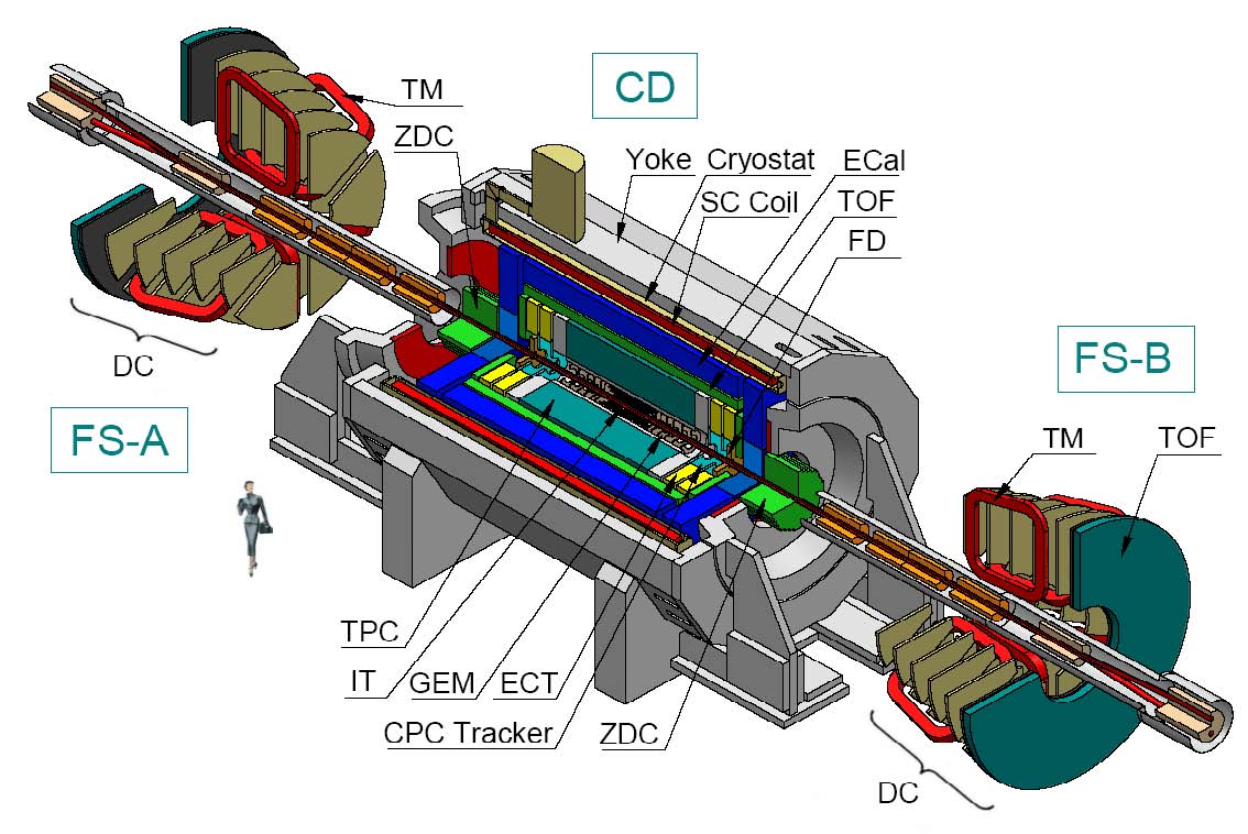 Схема и масштаб многоцелевого детектора MPD (Multi Purpose Detector) коллайдера NICA. Рисунок: