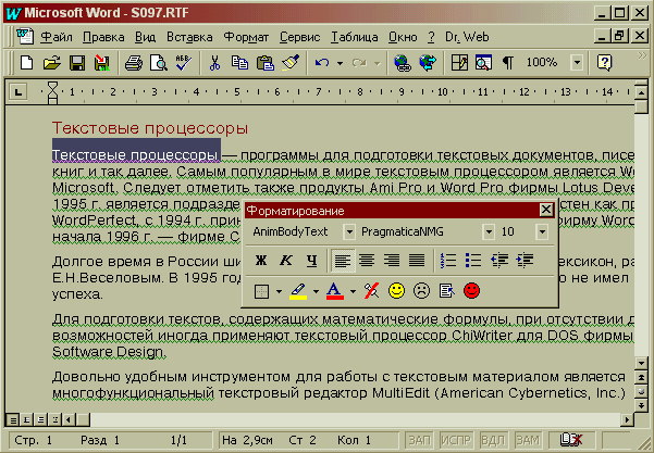 MS Word 97 для Windows.