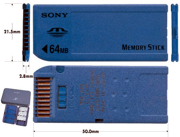 Memory Stick Sony 64 Мбайт с указанием размеров.