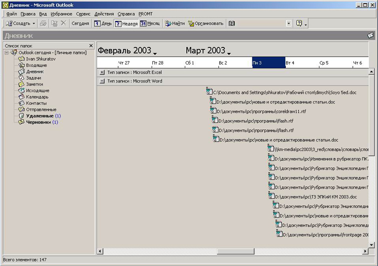 Microsoft Outlook 2000 (дневник)