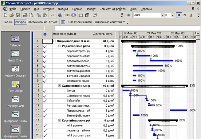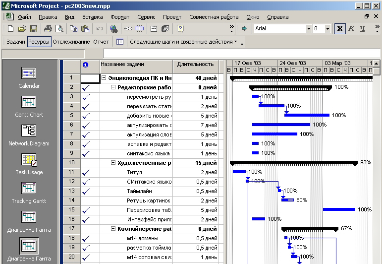 Microsoft Project 2002 (интерфейс)