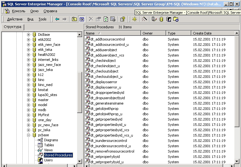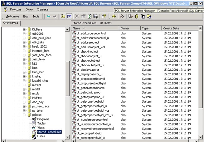 Интерфейс Microsoft SQL Server Enterprise Manager.