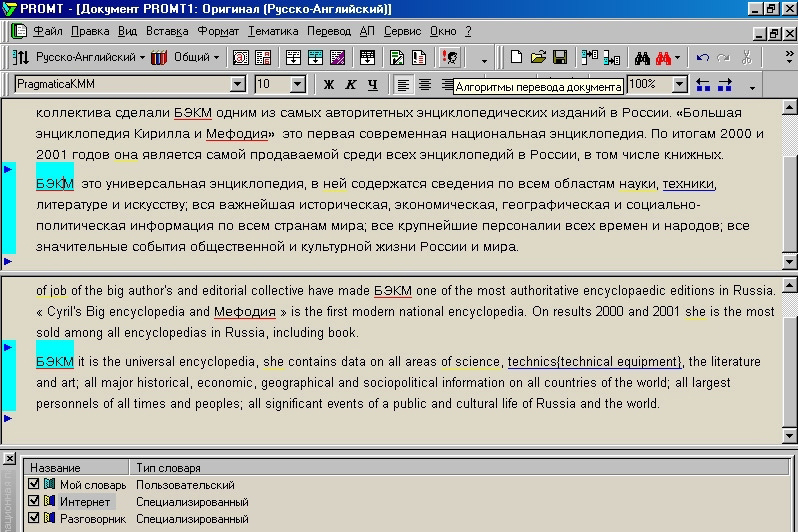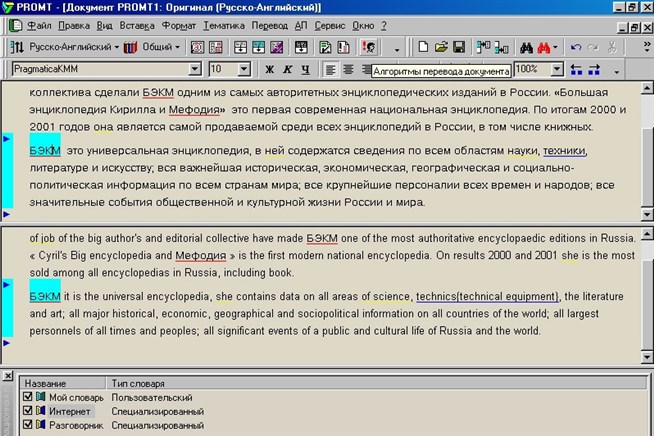 PROMT XT (интерфейс)