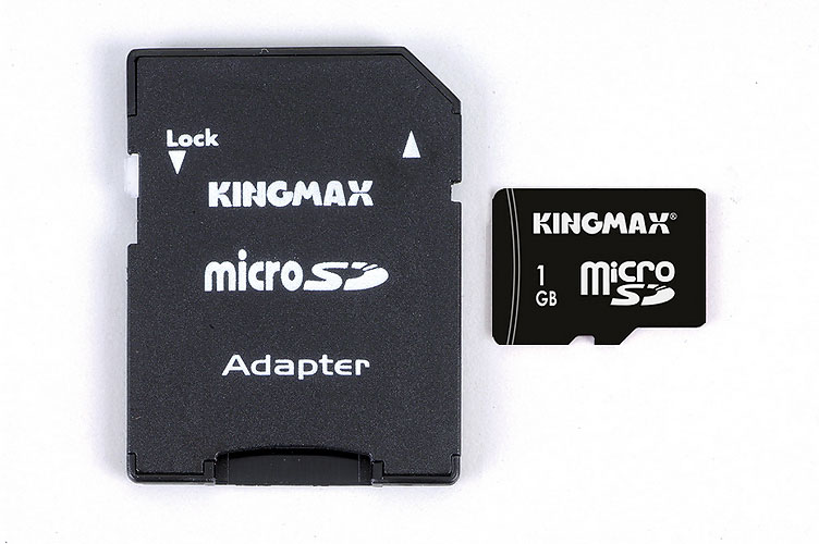 Модуль флэш-памяти формата MicroSD емкостью 1 Гб (справа) с электромеханическим адаптером для использования в стандартных SD-слотах (слева).