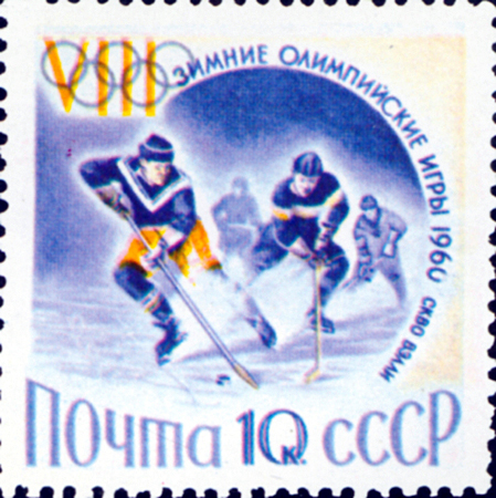 Выпущенная в СССР почтовая марка в честь VIII зимних Олимпийских игр 1960 (Скво-Вэлли).