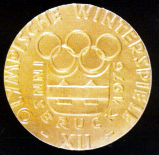 Олимпийская медаль (оборотная сторона) XII зимних Олимпийских игр.