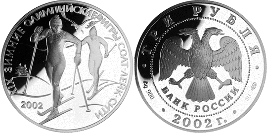 Памятная серебряная монета банка России, выпущенная к XIX Олимпийским играм в Солт-Лейк-Сити в 2002 году. Номинал - 3 рубля.
