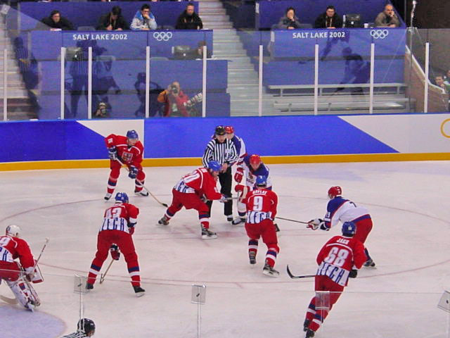 Российская сборная по хоккею против сборной Чехии в четвертьфинала на зимних Олимпийских играх в Солт-Лейк-Сити. 2002 год. Фото: Uncleweed, flickr.com