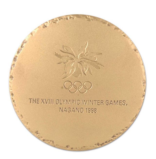 Памятная медаль (оборотная сторона) XVIII зимних Олимпийских игр в Нагано. 1998 год.