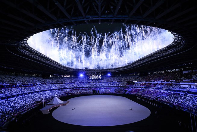 Церемония открытия XXXII летних Олимпийских игр 2020. Национальный стадион в Токио 23 июля 2021 г. Фото: Elif Ozturk Ozgoncu / Anadolu Agency / Getty Images